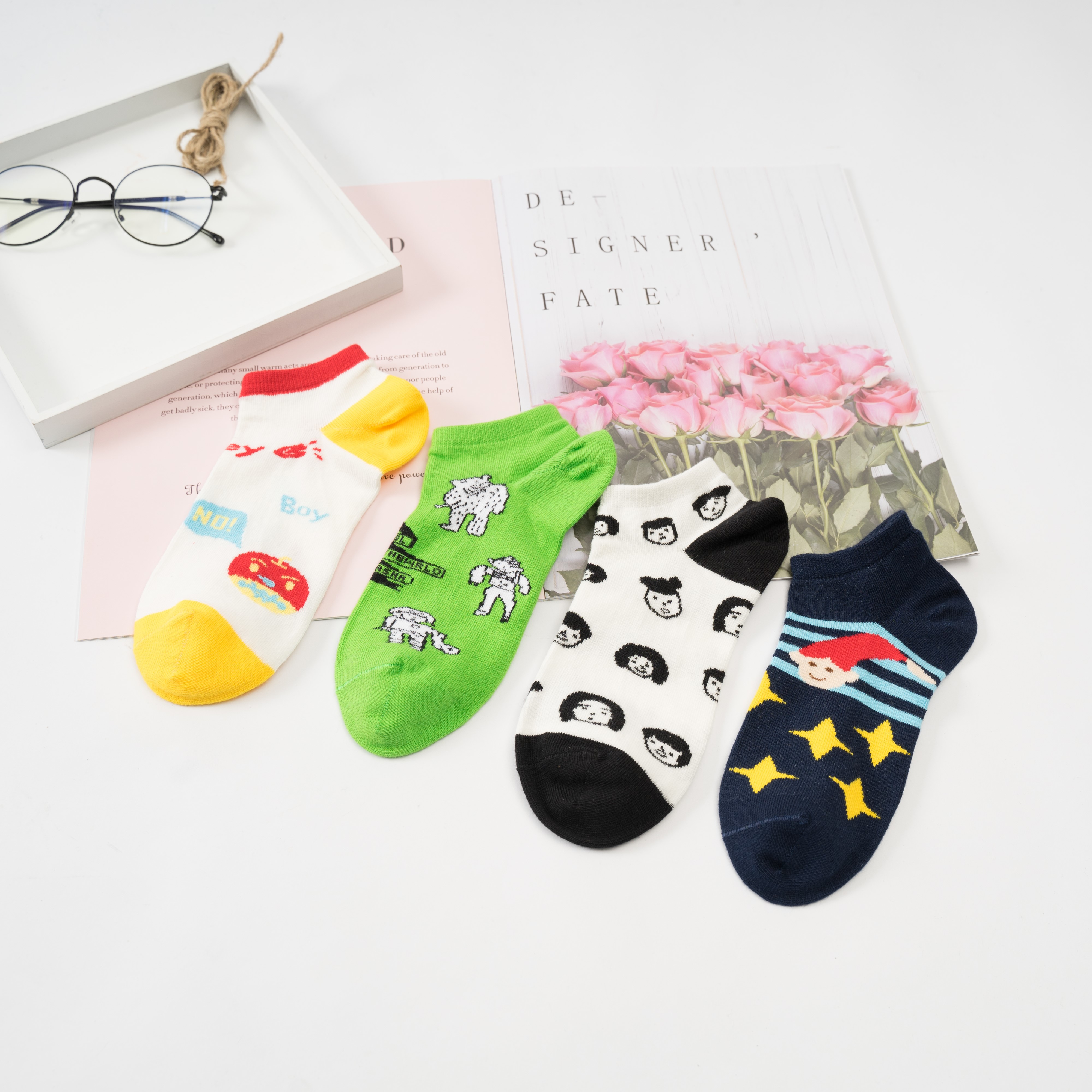 Colorful simple girl short designer cotton ankle socks